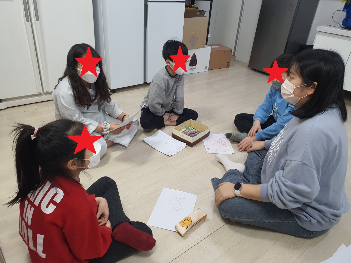 00지역아동센터에는 가정 내 경제적 어려움으로 인한 돌봄 부재, 정서적 지지 부족 및 방임 등으로 또래 관계 형성에 어려움을 보이는 여섯 명의 아이들이 있습니다. 이 아이들은 낮은 자존감과 부정적인 태도로 인해 학교생활도 힘들어합니다. 이러한 아이들의 마음을 치유하고 관계 안에서 서로를 수용하고 정서적 지지를 통해 자신감을 회복할 수 있도록「교원인연사랑캠페인」심리정서치유사업을 통해 총 20회기의 연극심리상담을 진행하였습니다.