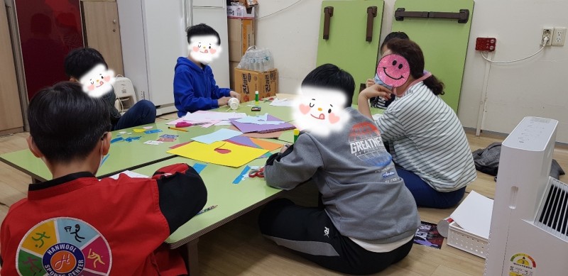 <집단 상담 프로그램에 참여하고 있는 아이들>